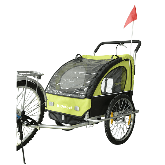 Un carro de paseo muy similar a un coche, diseñado especialmente para que los padres puedan disfrutar de largos paseos en bicicletas o caminatas al aire libre, junto a 2 pasajeros de manera cómoda y segura.